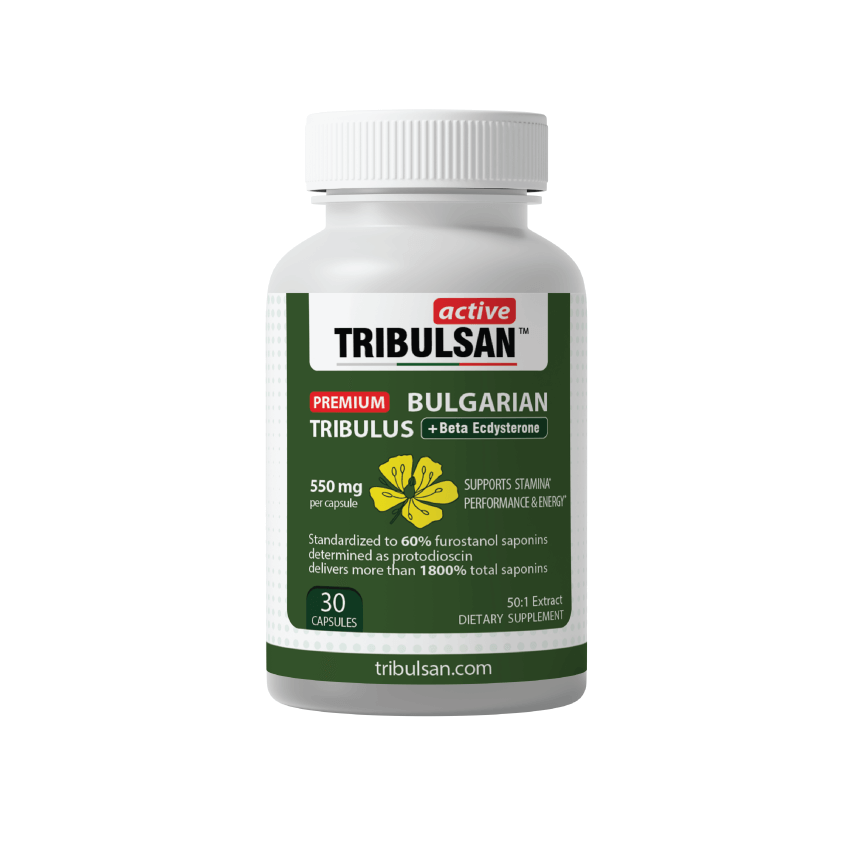 - TRIBULSAN ACTIVE contains 100% pure Bulgarian raw material. It is the highest quality extract obtained and synthesized from Bulgarian Tribulus Terrestris, which contains a dry extract of the aerial part of the Tribulus terrestris plant (Tribulus terrestris standardized to 60% furostanol saponins defined as protodioscin) 1800% total saponins). TRIBULSAN ACTIVE increases the expression of androgen receptors in the brain, thanks to its 60% protodioscin content. This means that it has a strong anabolic and androgenic effect on our body. It stimulates the functions of the reproductive system, increases the level of male sex hormones, increases muscle mass, increases muscle density, increases the desire for intimacy, increases the strength and duration of male health, favorably affects lipid metabolism in the direction of fat burning, has a hormone-balancing effect. TRIBULSAN ACTIVE is used in the complex treatment of reduced male health, sexual weakness, male infertility, dyslipoproteinemia (disorders in lipid metabolism), to reduce total cholesterol and low-density lipoproteins.